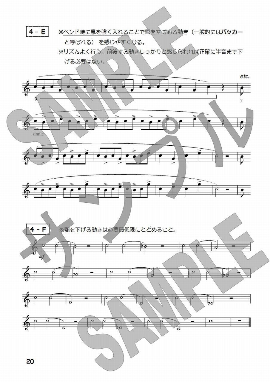 100パターン以上のリップスラーに加え、タンギングや音階練習など、14項目、計170の譜例を収録。